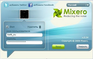 - клиент Mixero можно одним счелчком свернуть в миниатюрный квадратик;